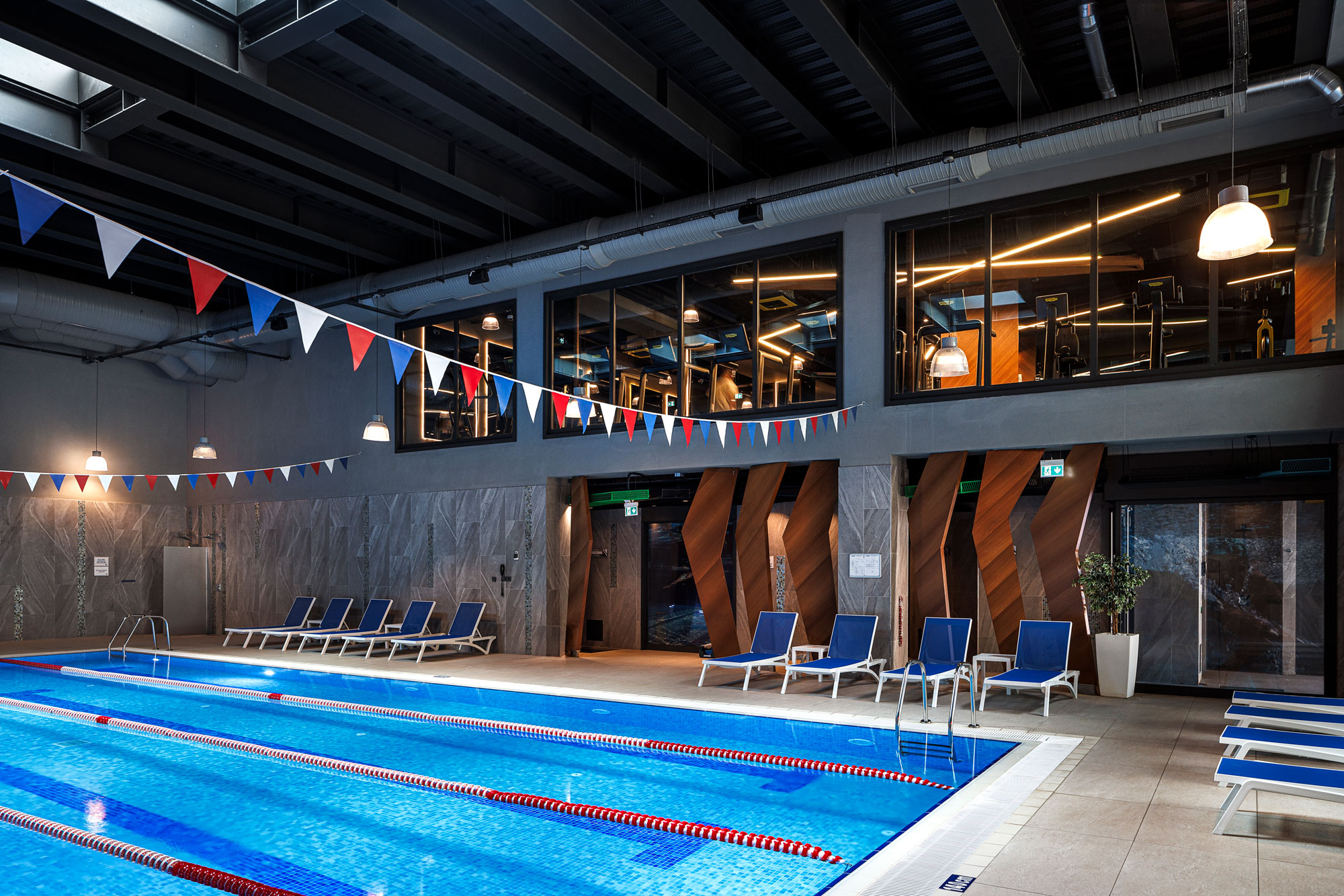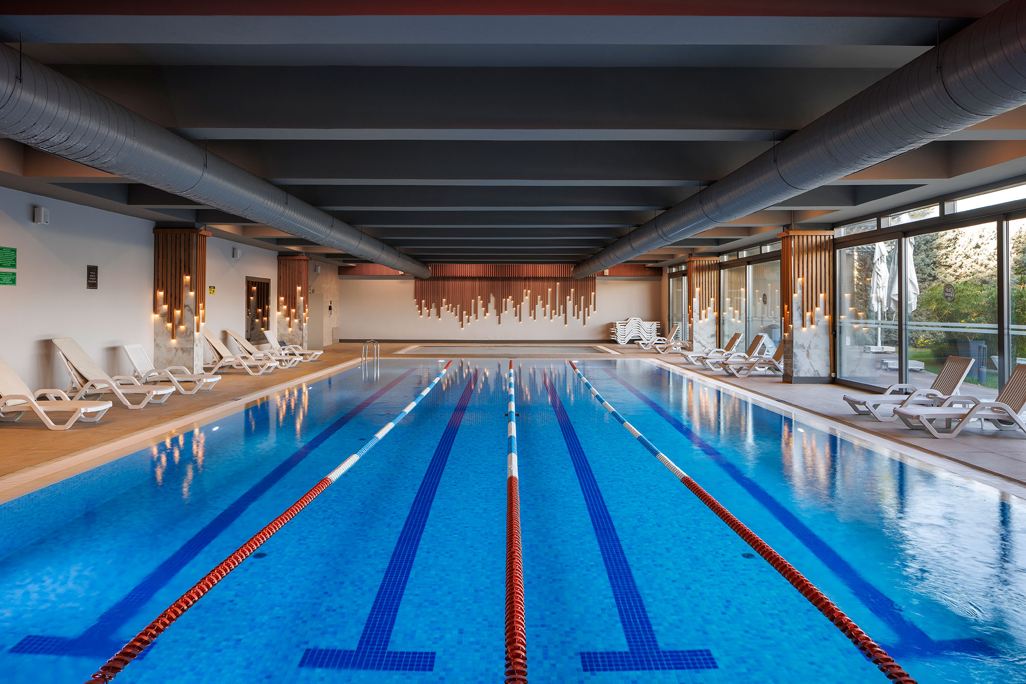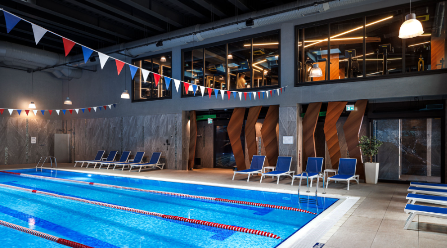 - Indoor and outdoor swimming pools,